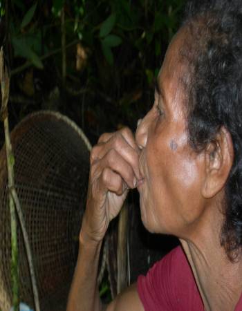 The heart of the island of Ceram is where the Musuane live. They are a nomadic tribe and travel constantly throughout their mountainous surroundings. Their knowledge of the seasons, plants and animals allows them to move about in perfect harmony with their environment. They do not waste the bounty of natural resources around them, but they use what is around them with energy and respect. The sago tree is the staple food of the Masuane When the tree is about fifteen years old, the Masuane cut it down and pound the inside to crush the fibers and obtain flour with high carbohydrate content. The sago palm gives them three times more calories than any other plant food in the forest based on the time it takes to collect it. Six hundred pounds of sago can be harvested and prepared in ten days, enough food to fulfill the needs of an adult for an entire year.