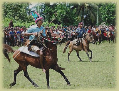 Pasola is derived from the word Sola or Hola meaning a kind of a long wooden stick used as a spear to fling each other by two opponent groups of horsemen. The horses use for this ritual are usually ridden by braves and skilled selected men wearing traditional customs.